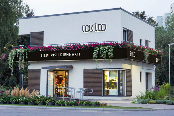 Tacito mājā, Stirnu ielā 29, ziedu piedāvājums ir daudz plašāks kā internetveikalā pieejamais, ieskaitot eksotiskos ziedus un dārza ziedus,